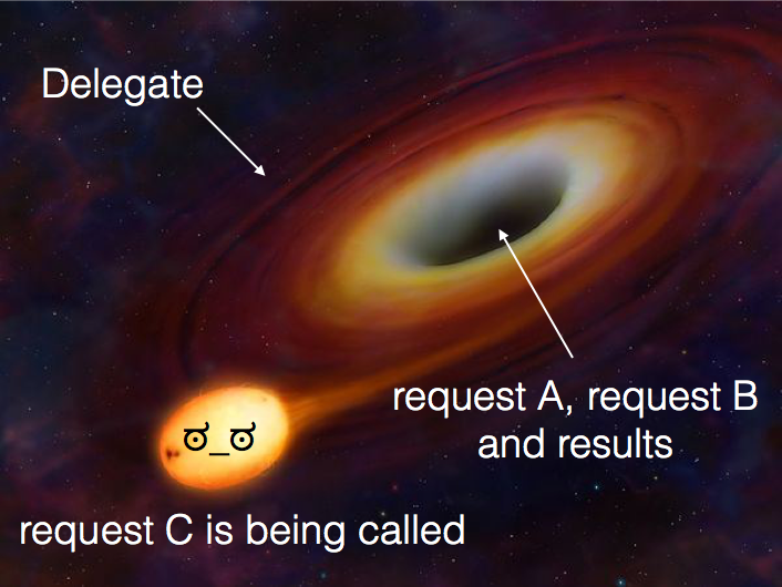 It looks like a black hole. You manage everything inside a delegate function, including, order requests, concatenate data, handle error and parse result. For all requests in one place, Ah that’s a lot. (@_@)